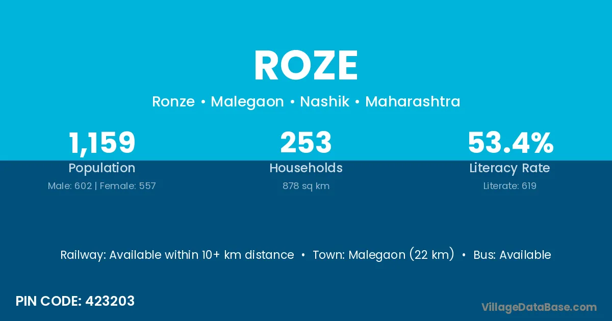Malegaon (22 km) is the nearest town to Roze village for major economic activities and is located approximately 22 km away.