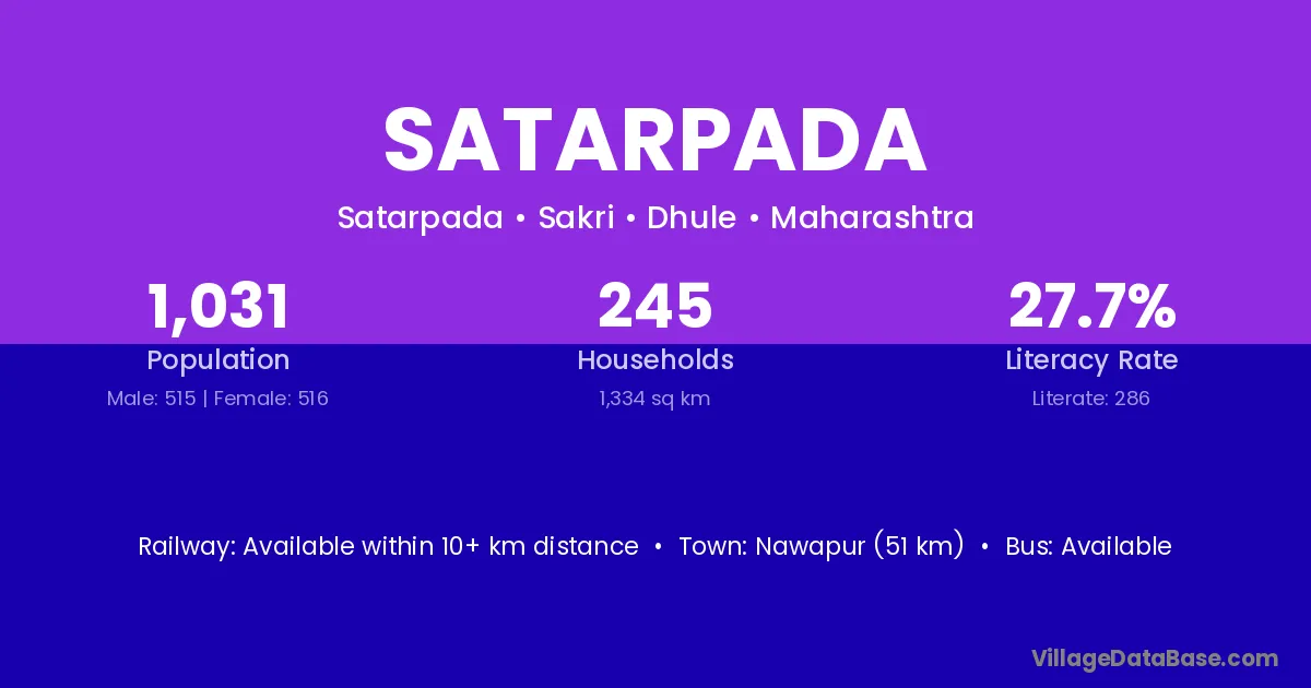 Malegaon (32 km) is the nearest town to Satarpada village for major economic activities and is located approximately 32 km away.