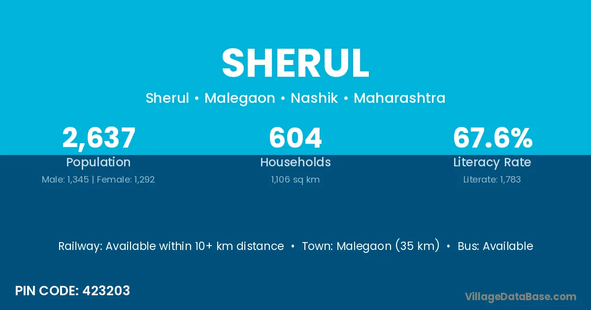 Malegaon (35 km) is the nearest town to Sherul village for major economic activities and is located approximately 35 km away.