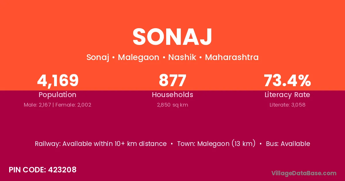 Malegaon (13 km) is the nearest town to Sonaj village for major economic activities and is located approximately 13 km away.