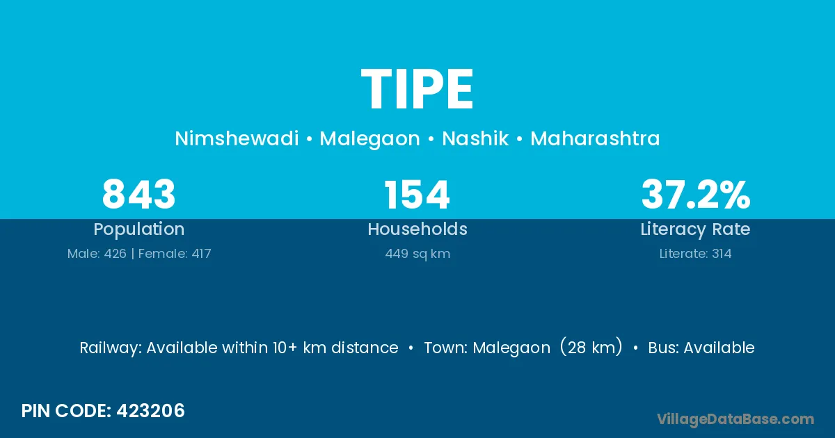 Malegaon (28 km) is the nearest town to Tipe village for major economic activities and is located approximately 28 km away.