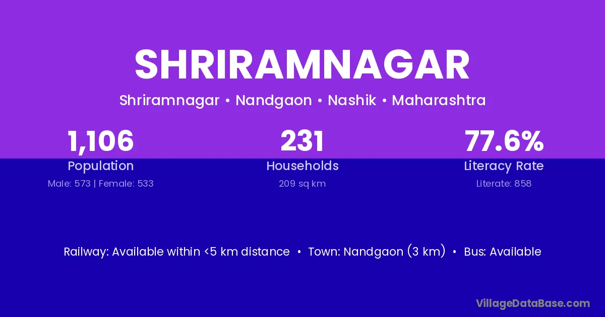 Nandgaon (3 km) is the nearest town to Shriramnagar village for major economic activities and is located approximately 3 km away.