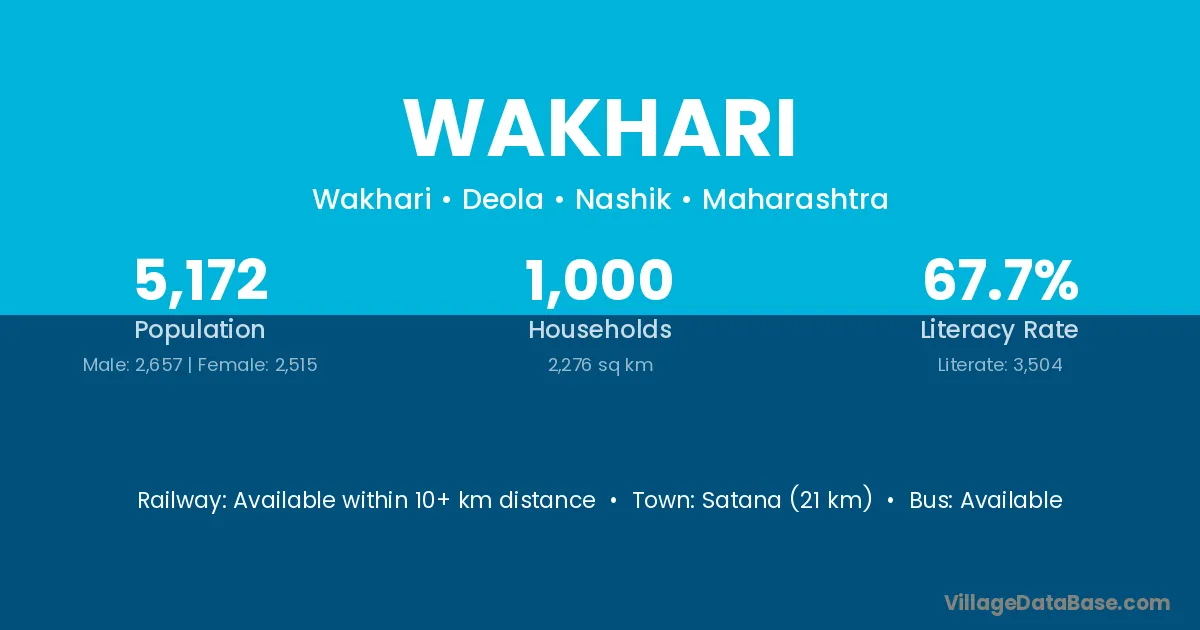 Nandgaon (13 km) is the nearest town to Wakhari village for major economic activities and is located approximately 13 km away.