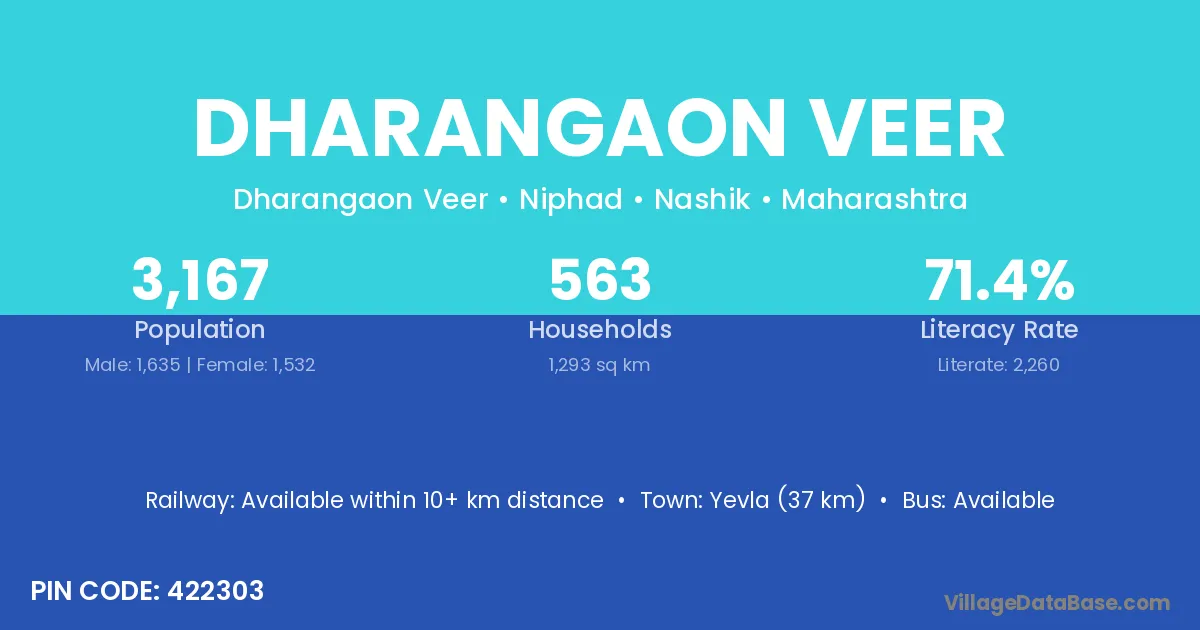 Yevla (37 km) is the nearest town to Dharangaon Veer village for major economic activities and is located approximately 37 km away.