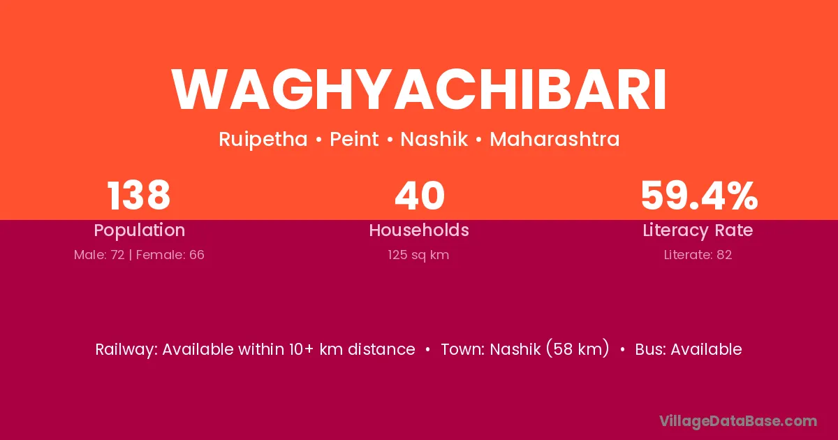 Waghyachibari village has a total population of 138 people, of which 72 are males and 66 are females.