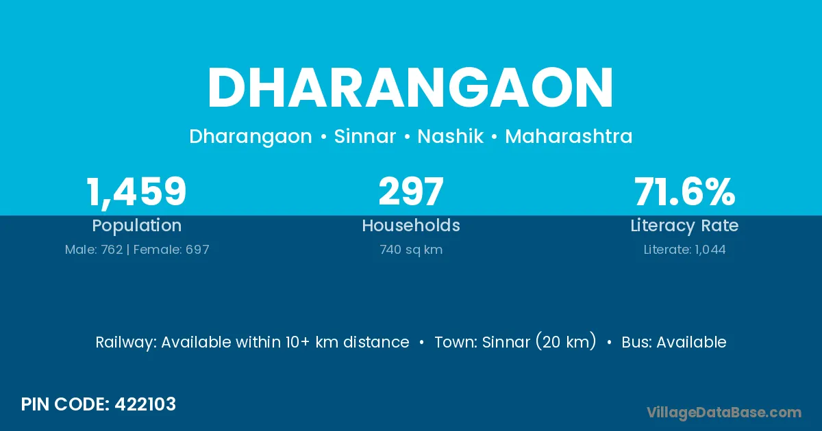 Sinnar (20 km) is the nearest town to Dharangaon village for major economic activities and is located approximately 20 km away.