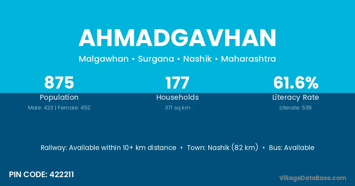 Nashik (82 km) is the nearest town to Ahmadgavhan village for major economic activities and is located approximately 82 km away.