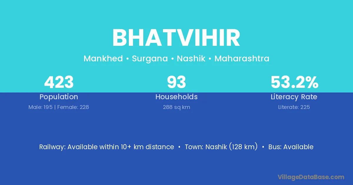 Bhatvihir village has a total population of 423 people, of which 195 are males and 228 are females.