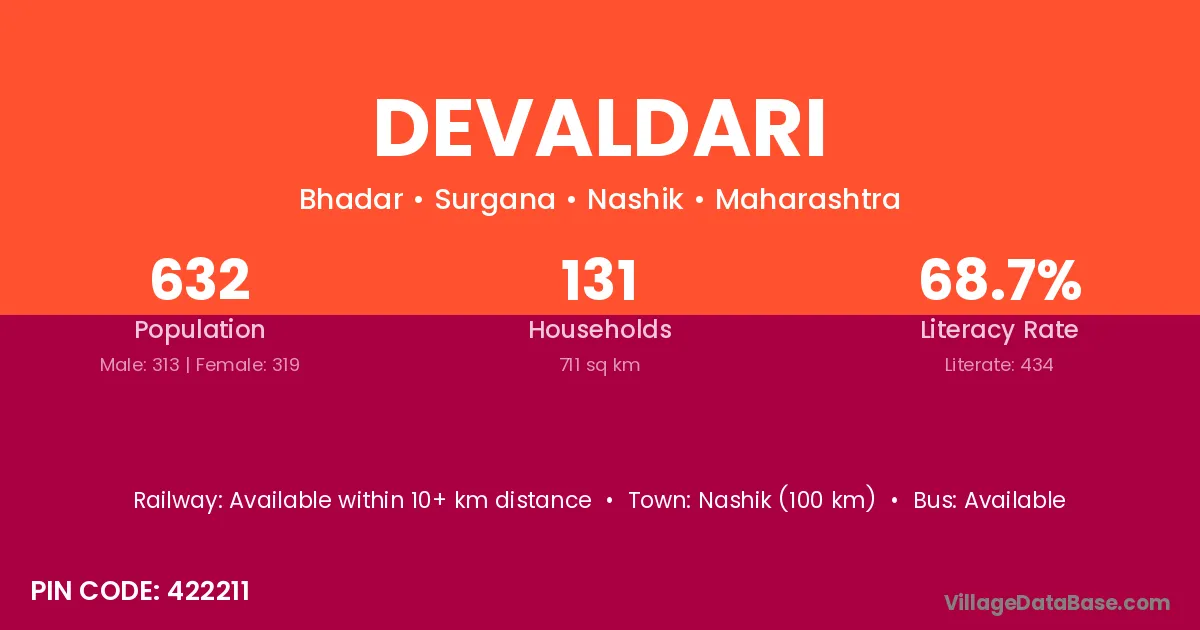 Nashik (100 km) is the nearest town to Devaldari village for major economic activities and is located approximately 100 km away.