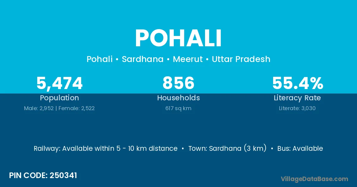 Pohali village has a total population of 1,347 people, of which 686 are males and 661 are females.