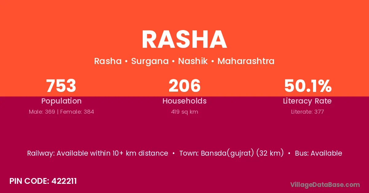 According to Census 2011 information, the village code of Rasha village is 422211.