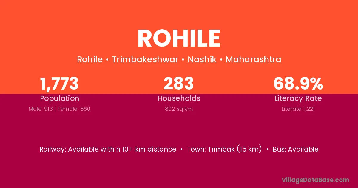 Trimbak (15 km) is the nearest town to Rohile village for major economic activities and is located approximately 15 km away.
