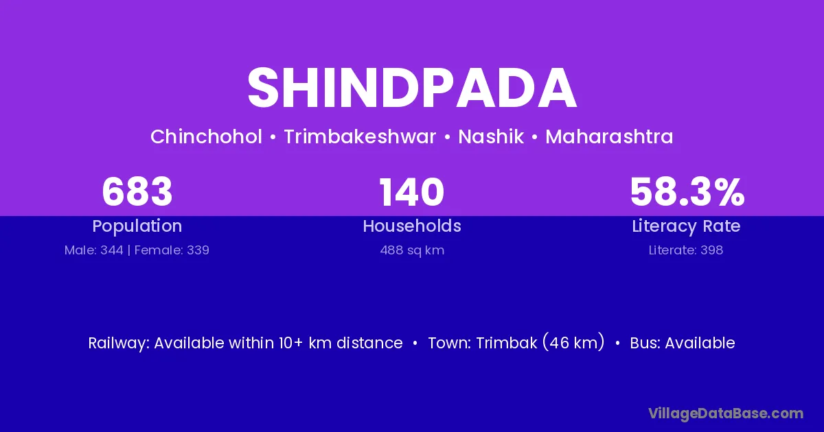 Shindpada village has a total population of 683 people, of which 344 are males and 339 are females.