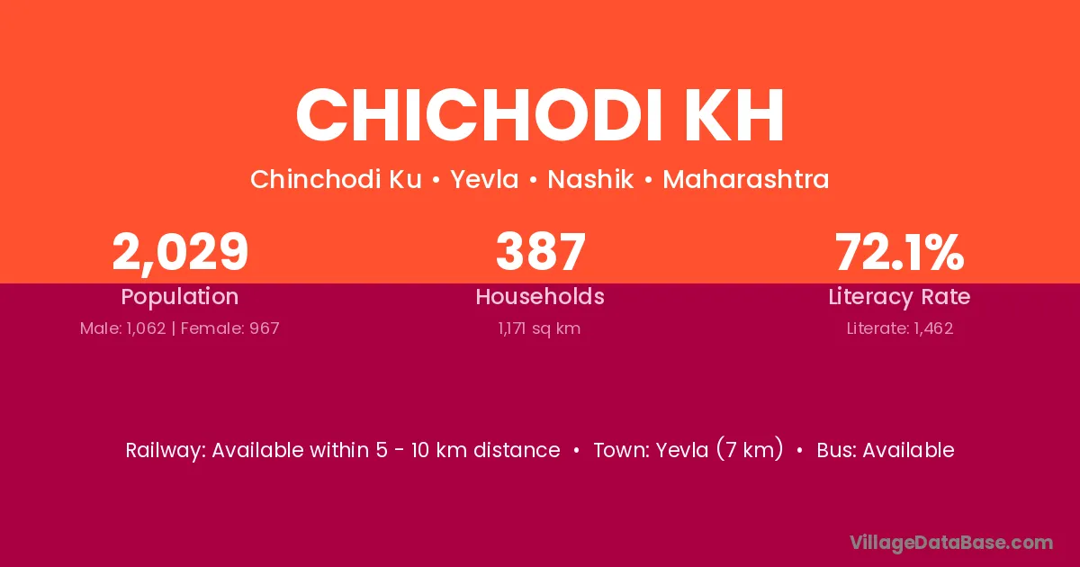 Yevla (7 km) is the nearest town to Chichodi Kh village for major economic activities and is located approximately 7 km away.