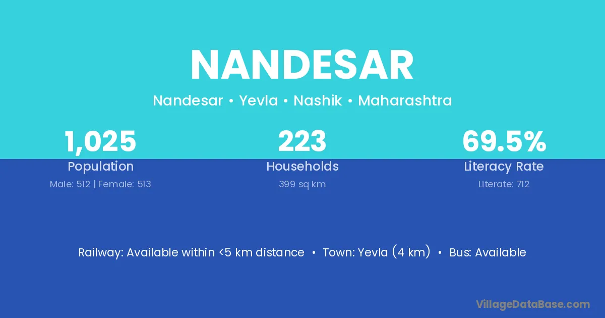 Yevla (4 km) is the nearest town to Nandesar village for major economic activities and is located approximately 4 km away.