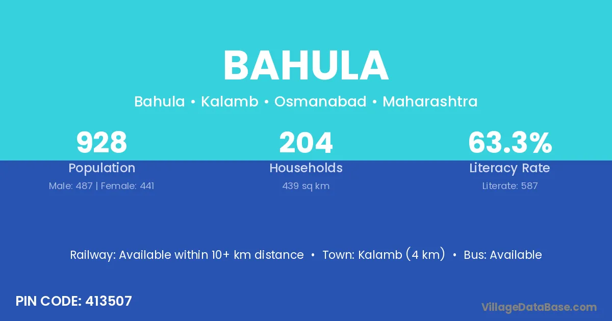 Kalamb (4 km) is the nearest town to Bahula village for major economic activities and is located approximately 4 km away.
