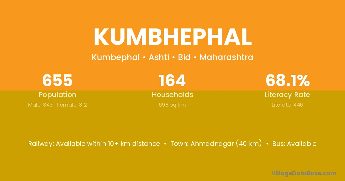 Paranda (18 km) is the nearest town to Kumbhephal village for major economic activities and is located approximately 18 km away.