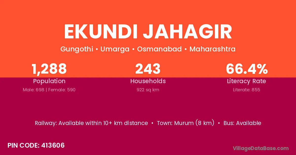 According to Census 2011 information, the village code of Ekundi Jahagir village is 413606.