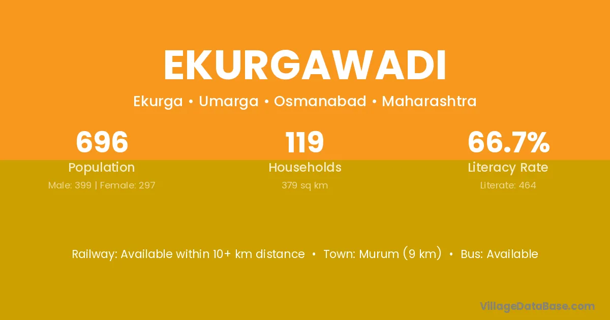 Murum (9 km) is the nearest town to Ekurgawadi village for major economic activities and is located approximately 9 km away.