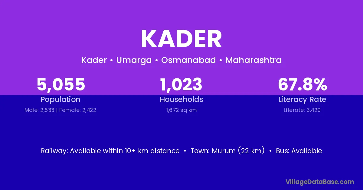 Kader village has a total population of 5,055 people, of which 2,633 are males and 2,422 are females.