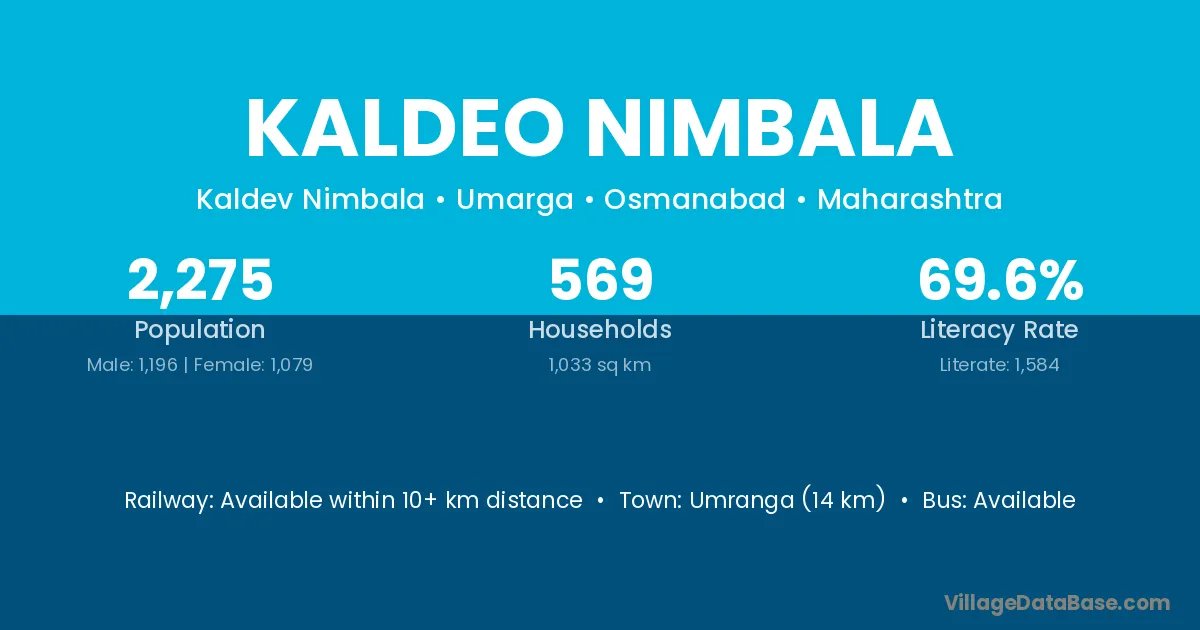 Kaldeo Nimbala village has a total population of 2,275 people, of which 1,196 are males and 1,079 are females.