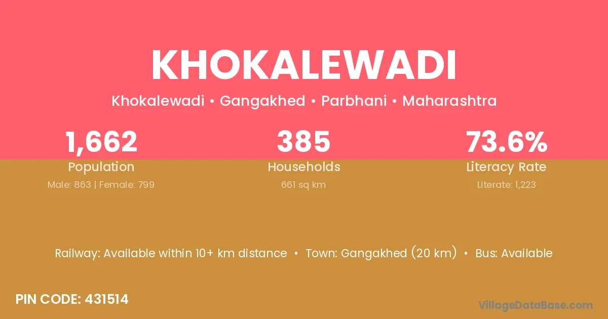 According to Census 2011 information, the village code of Khokalewadi village is 431514.