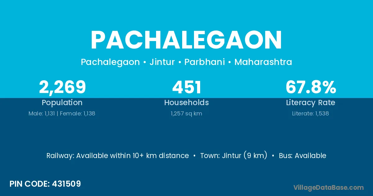 Jintur (9 km) is the nearest town to Pachalegaon village for major economic activities and is located approximately 9 km away.