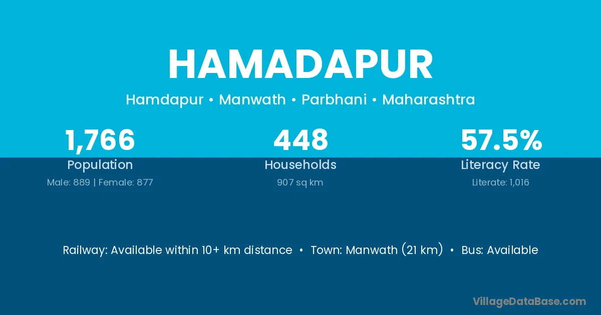 Manwath (21 km) is the nearest town to Hamadapur village for major economic activities and is located approximately 21 km away.