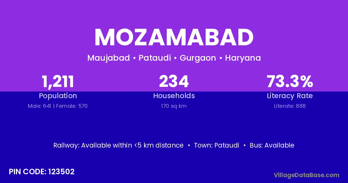 Mozamabad village has a total population of 1,141 people, of which 592 are males and 549 are females.
