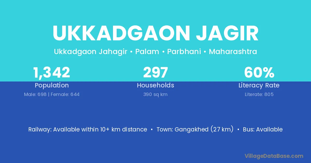 Ukkadgaon Jagir village has a total population of 1,342 people, of which 698 are males and 644 are females.