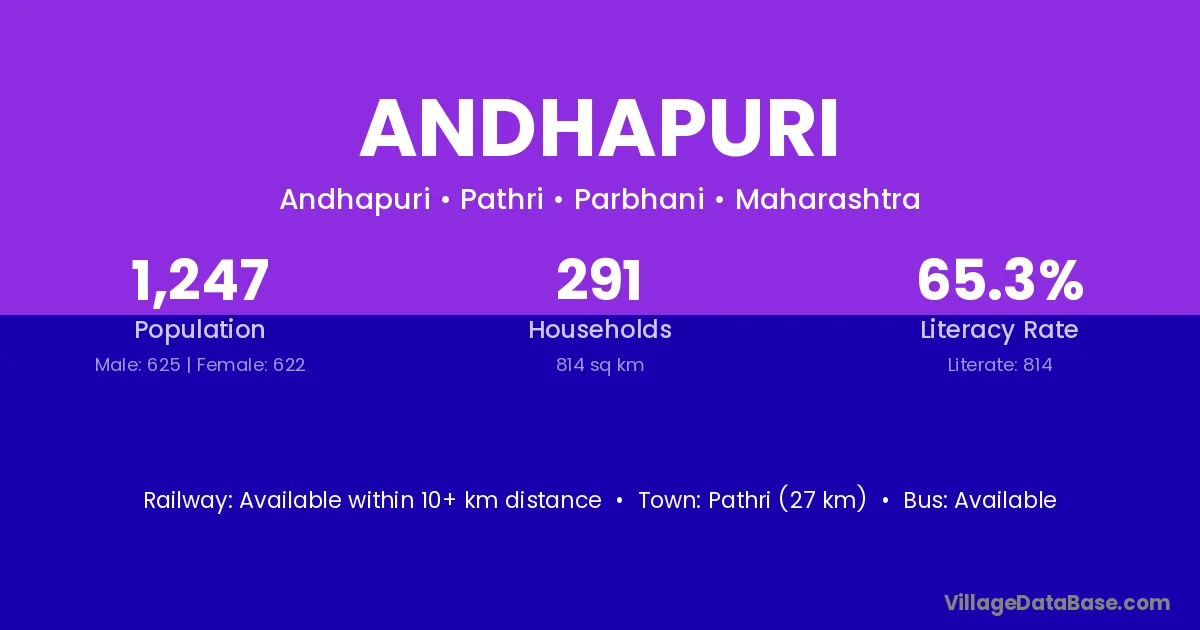 Pathri (27 km) is the nearest town to Andhapuri village for major economic activities and is located approximately 27 km away.