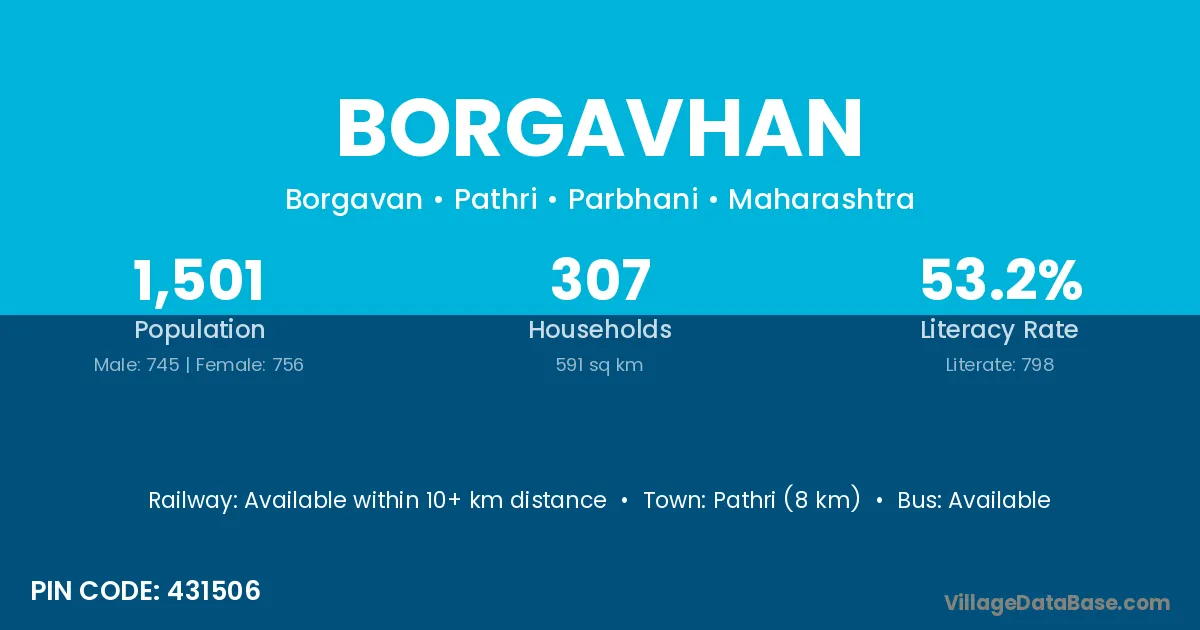 Pathri (8 km) is the nearest town to Borgavhan village for major economic activities and is located approximately 8 km away.
