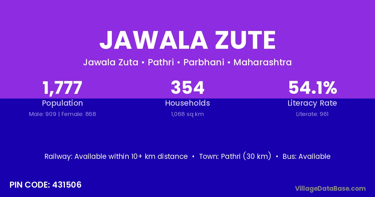 Pathri (30 km) is the nearest town to Jawala Zute village for major economic activities and is located approximately 30 km away.