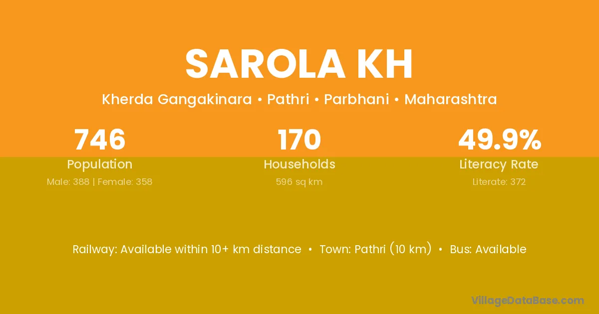 Sarola Kh village has a total population of 746 people, of which 388 are males and 358 are females.