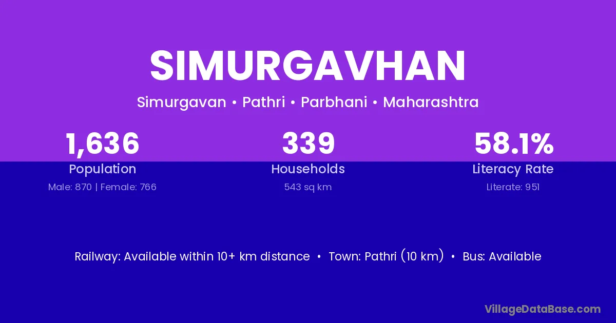 Pathri (10 km) is the nearest town to Simurgavhan village for major economic activities and is located approximately 10 km away.