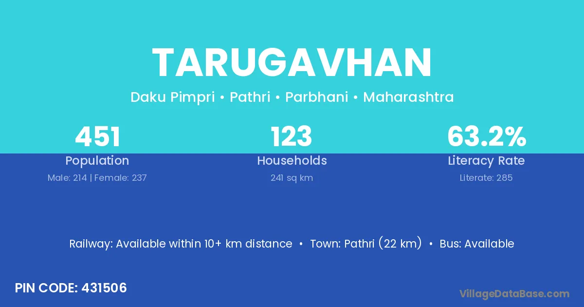 Pathri (22 km) is the nearest town to Tarugavhan village for major economic activities and is located approximately 22 km away.