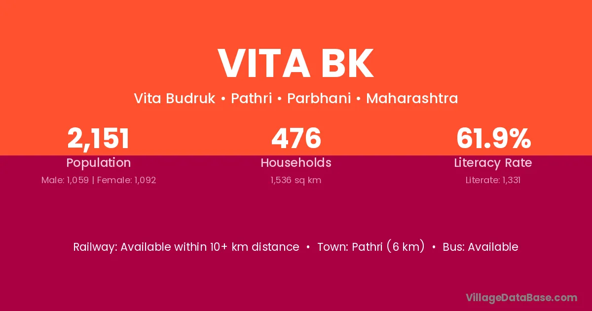 Pathri (6 km) is the nearest town to Vita Bk village for major economic activities and is located approximately 6 km away.