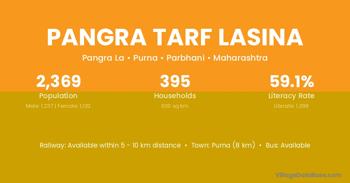 Pangra Tarf Lasina village is located in the Purna Tehsil of the Parbhani district in Maharashtra .