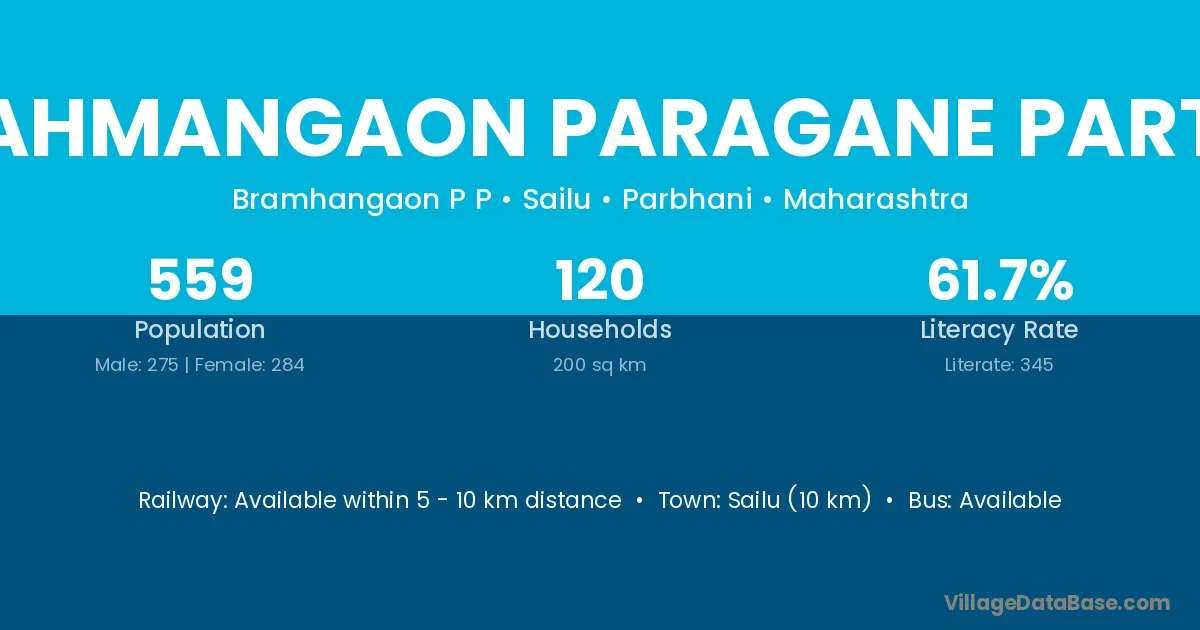 Sailu (10 km) is the nearest town to Brahmangaon Paragane Partur village for major economic activities and is located approximately 10 km away.