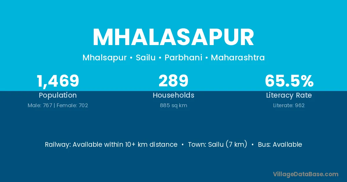 Mhalasapur village has a total population of 1,469 people, of which 767 are males and 702 are females.