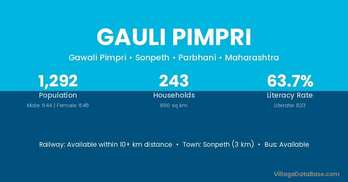 Gauli Pimpri village has a total population of 1,292 people, of which 644 are males and 648 are females.