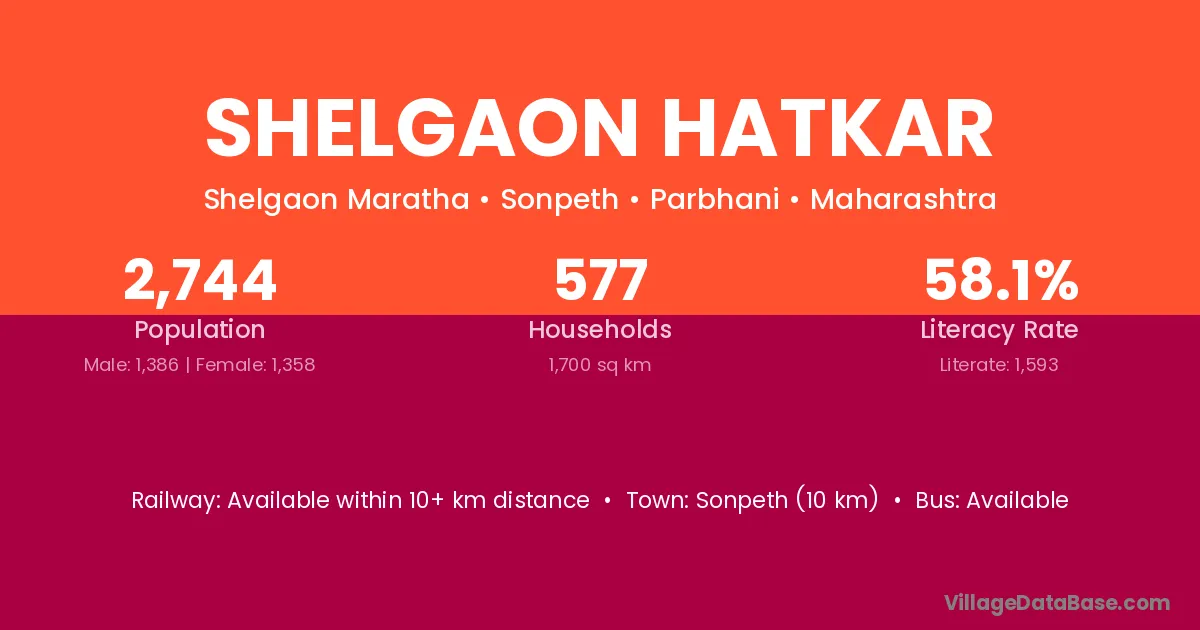 Sonpeth (10 km) is the nearest town to Shelgaon Hatkar village for major economic activities and is located approximately 10 km away.