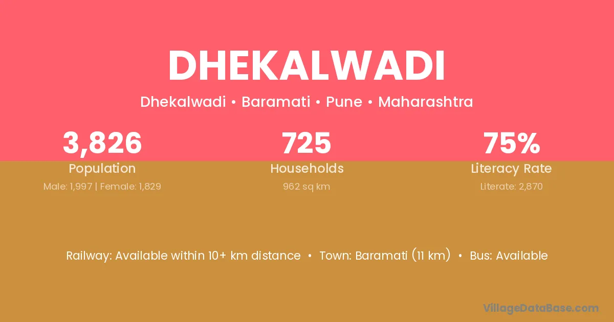 Baramati (11 km) is the nearest town to Dhekalwadi village for major economic activities and is located approximately 11 km away.