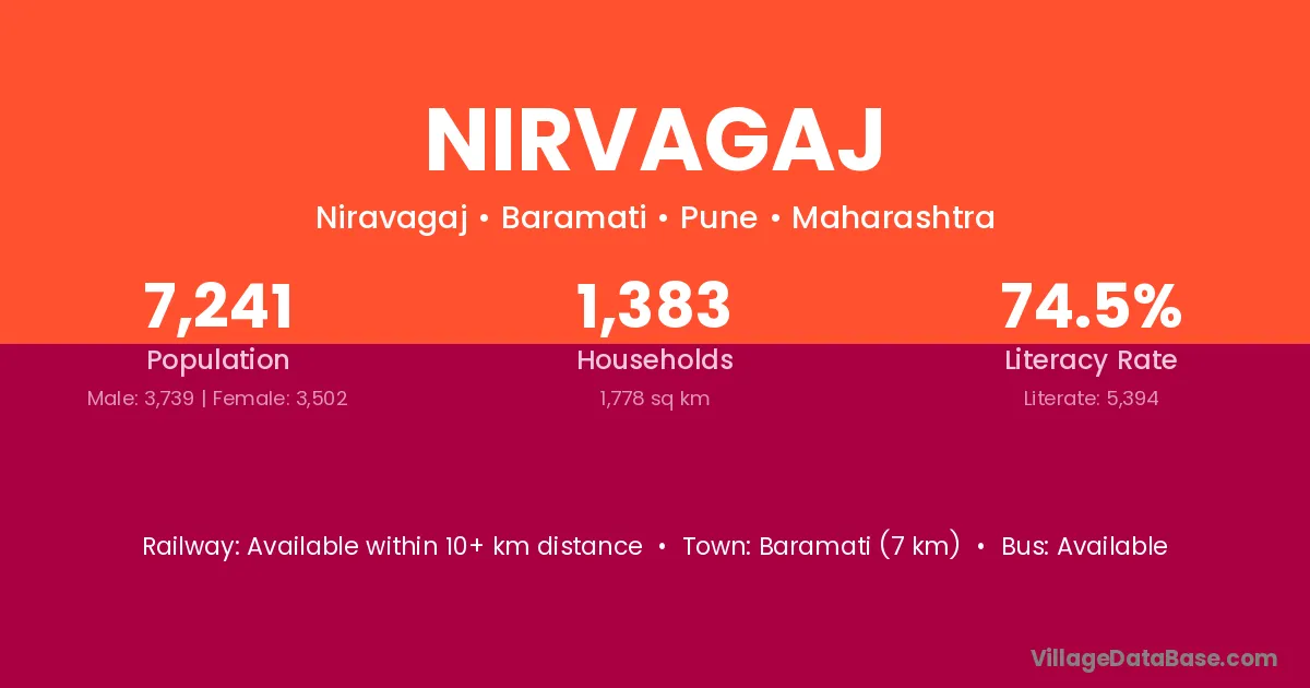 Baramati (7 km) is the nearest town to Nirvagaj village for major economic activities and is located approximately 7 km away.
