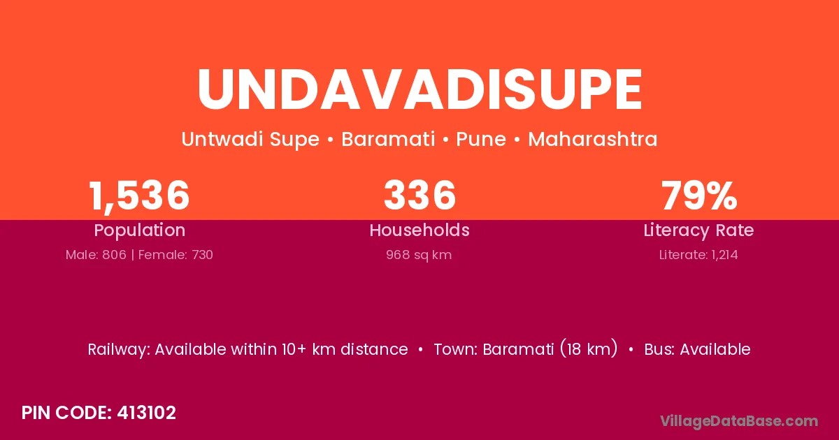 Baramati (18 km) is the nearest town to Undavadisupe village for major economic activities and is located approximately 18 km away.