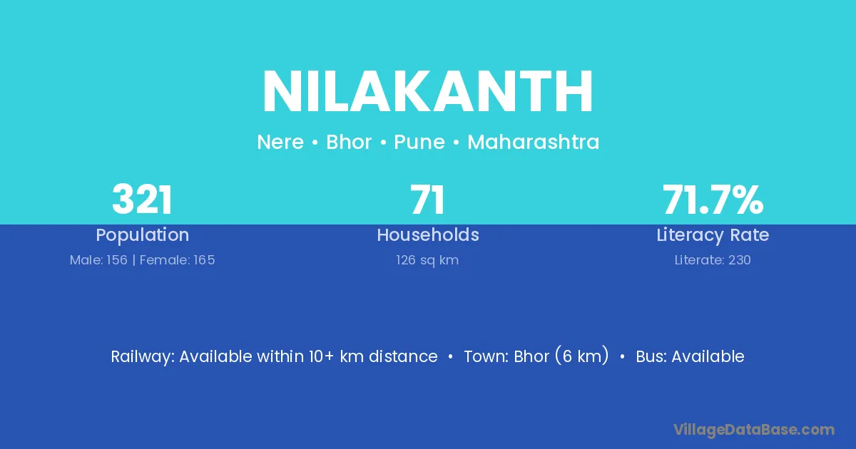 Bhor (6 km) is the nearest town to Nilakanth village for major economic activities and is located approximately 6 km away.