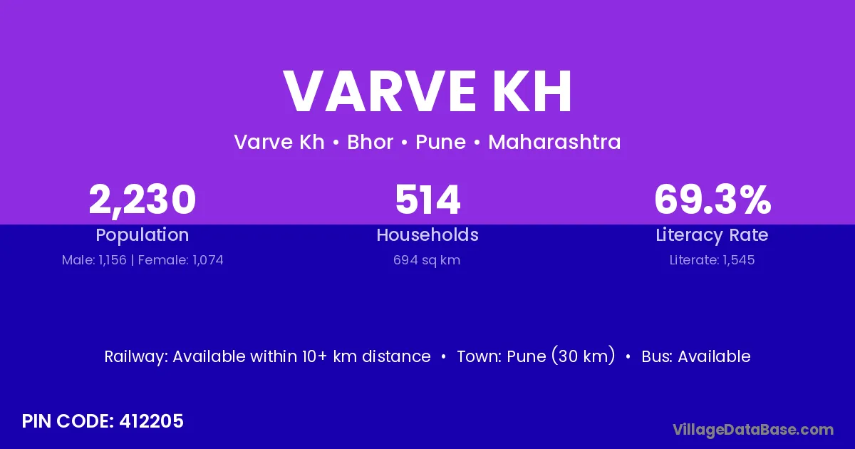 Pune (30 km) is the nearest town to Varve Kh village for major economic activities and is located approximately 30 km away.