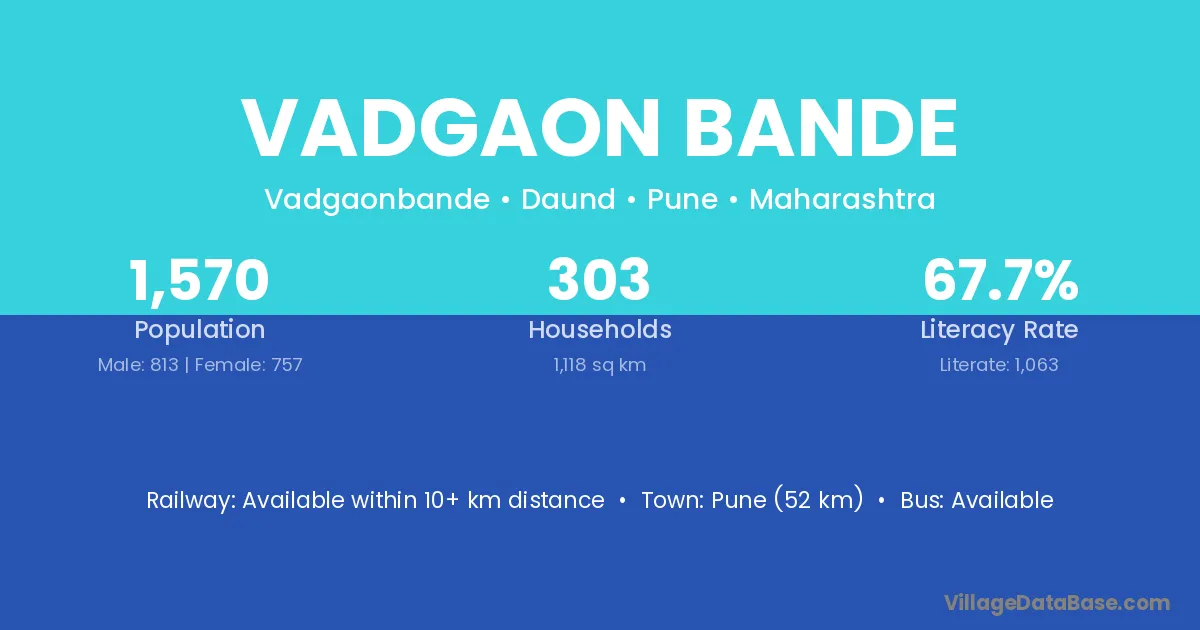 Vadgaon Bande village has a total population of 1,570 people, of which 813 are males and 757 are females.