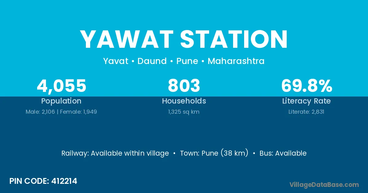 Pune (38 km) is the nearest town to Yawat Station village for major economic activities and is located approximately 38 km away.