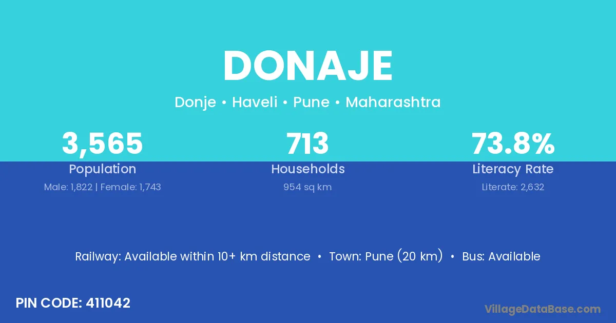 Pune (20 km) is the nearest town to Donaje village for major economic activities and is located approximately 20 km away.